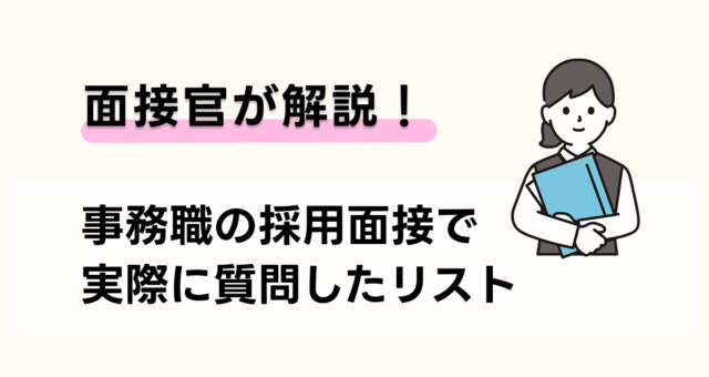 【元面接官が解説】事務職の面接で実際に聞いていた質問と答え方のポイント 事務職職種別対策 本記事では、筆者が事務職の新卒採用面接で実際に面接官として質問していた内容をもとに解説しています。面接の現場でどのような意図で質問していたのかを踏まえてまとめていますので、ぜひ参考にしてください。毎年何百名と面接した中で実際に聞いていたこと... 2025.10.10 事務職職種別対策